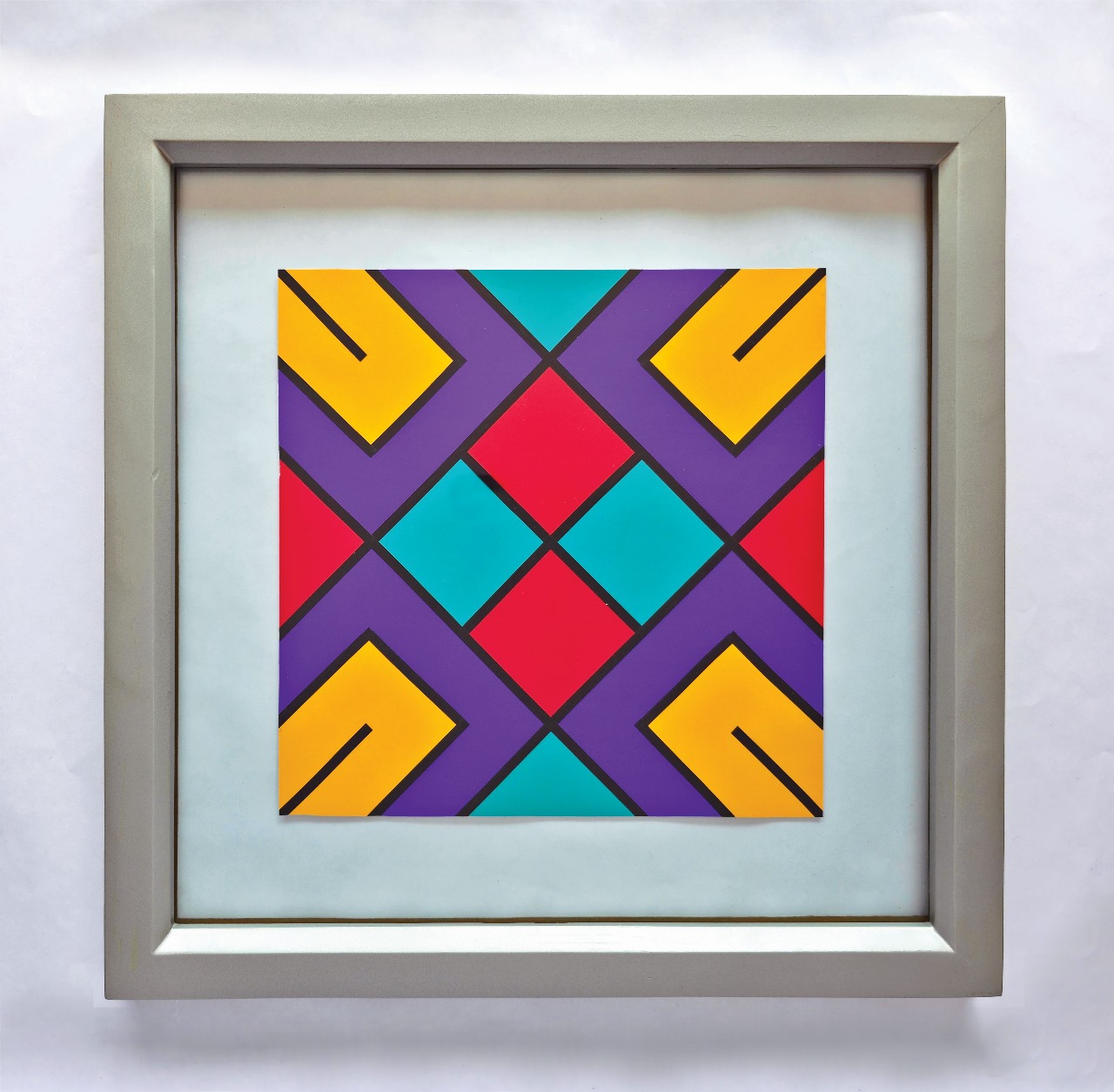 Técnica: Vinil adherible ensamblado manualmente montado en Marco de madera de pino con Maria Luisa transparente (doble vidrio)
